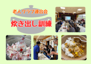 11月20日、住吉校区の老人クラブ連合会のみなさんの交流会で、災害時に備えた炊き出し訓練を行いました。